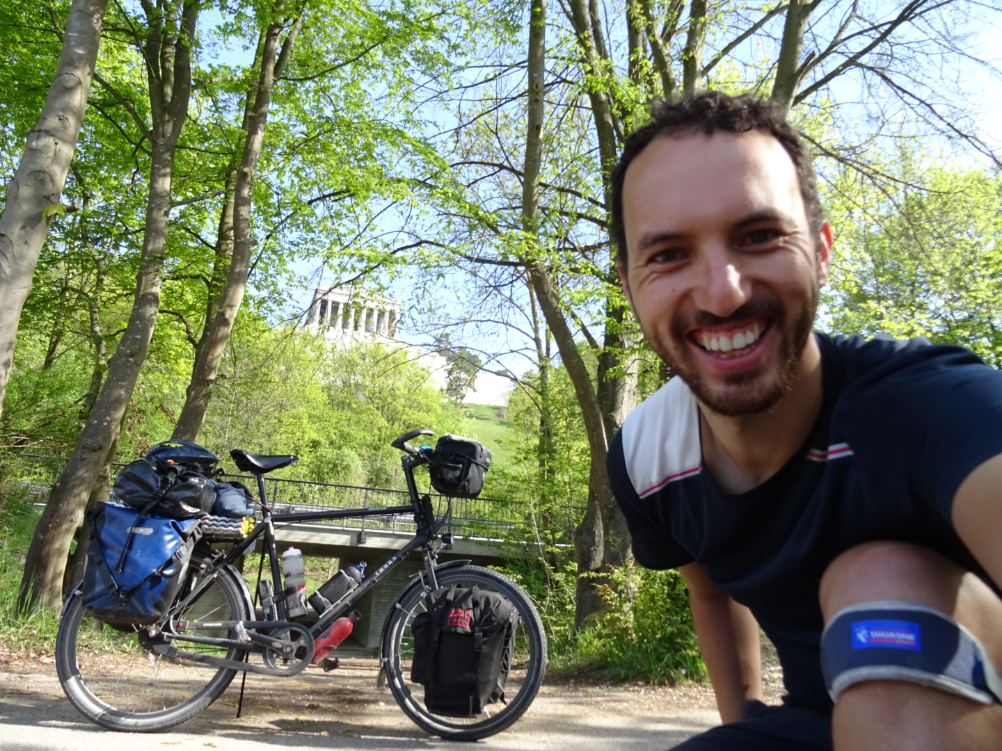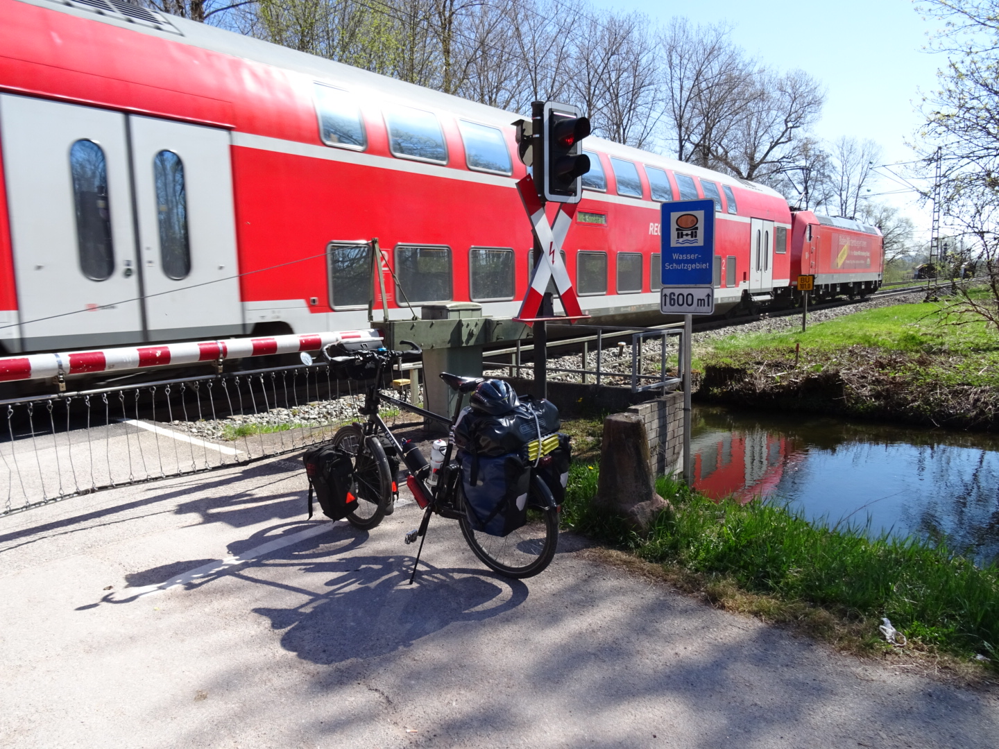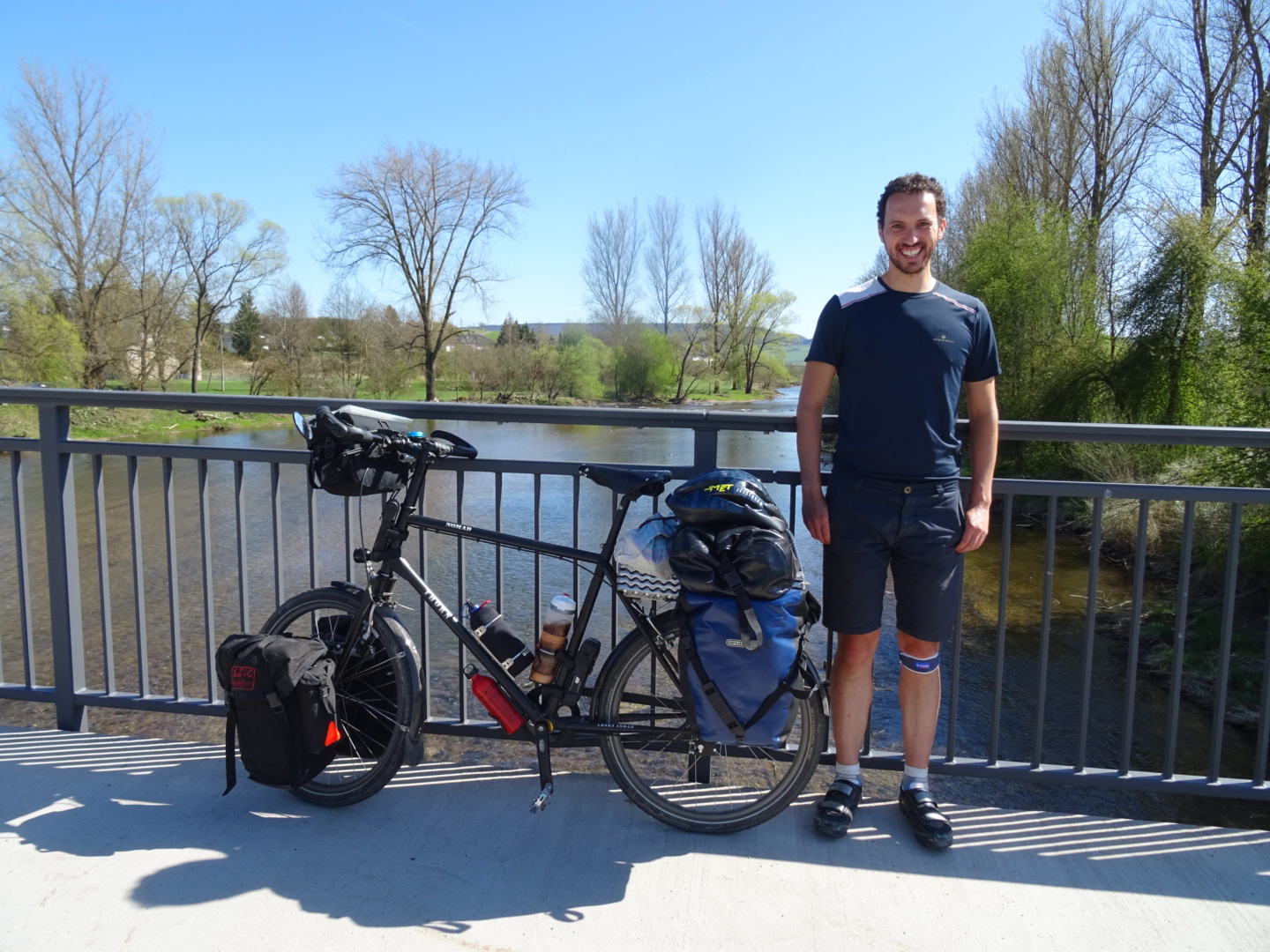 The German section of the route has been 580km in length, we’ve cycled it in just under a week I think. We’ve been aiming for around 50 miles/ 80km per day. We usually start moving by 9.30am and have multiple breaks, especially for lunch and shopping. Then look for a campspot at 6pm and are in our tents by 9pm/when the light has nearly faded.