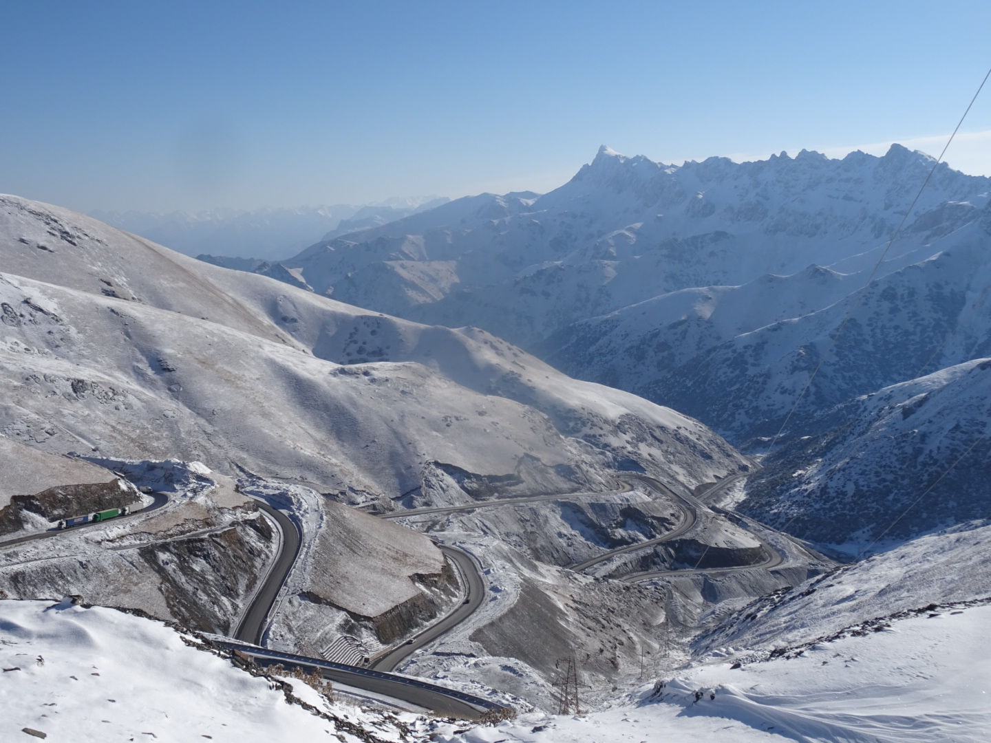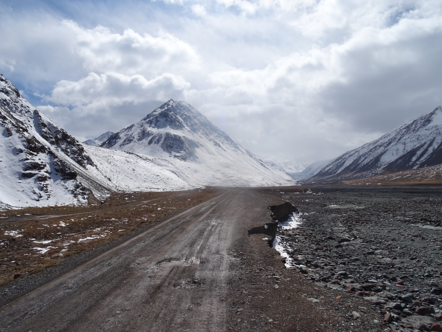 The road up the pass was gruelling, the road conditions similar to Tajikistan. But we all made it!