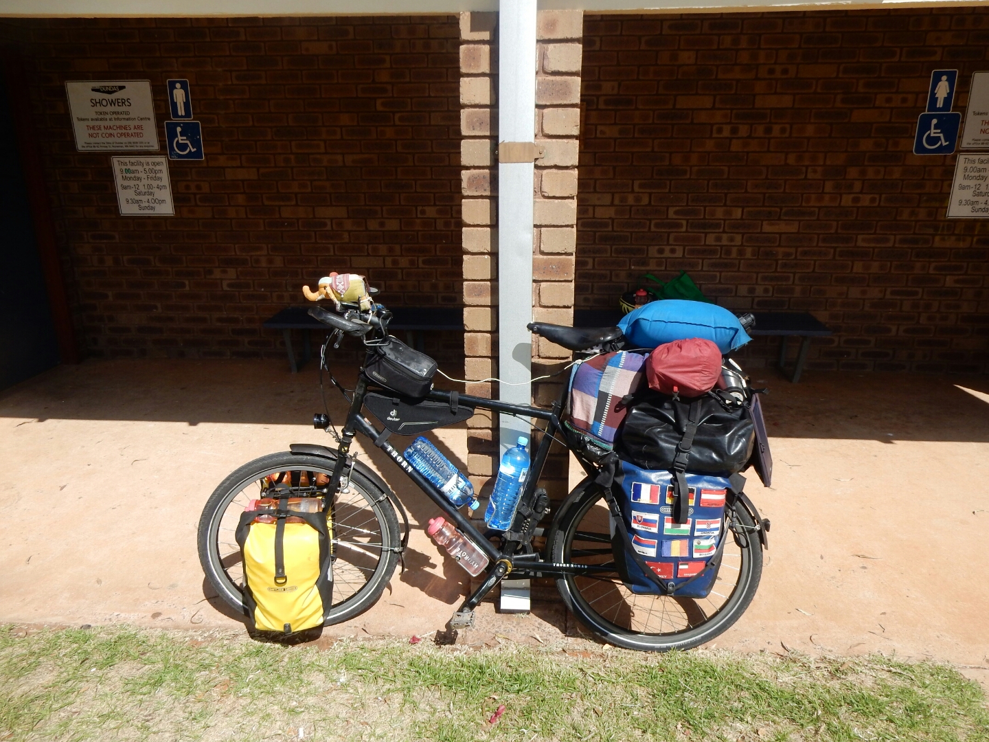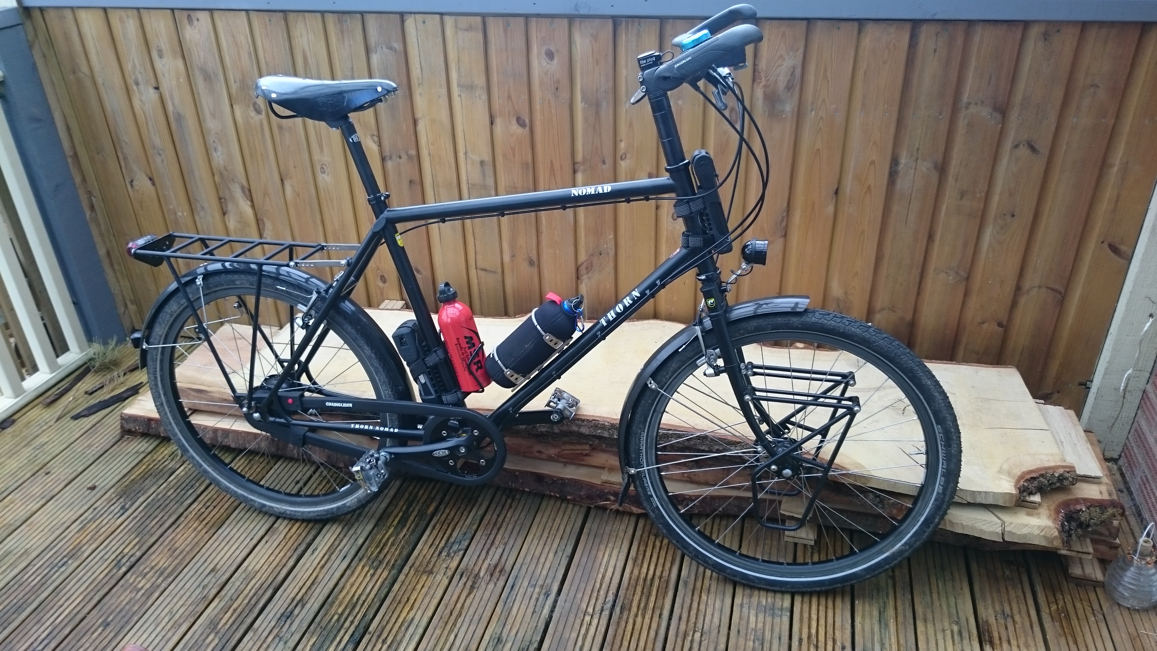 The bicycle is a Thorn Nomad, a custom built expedition bicycle made in Bridgewater, Somerset, UK.